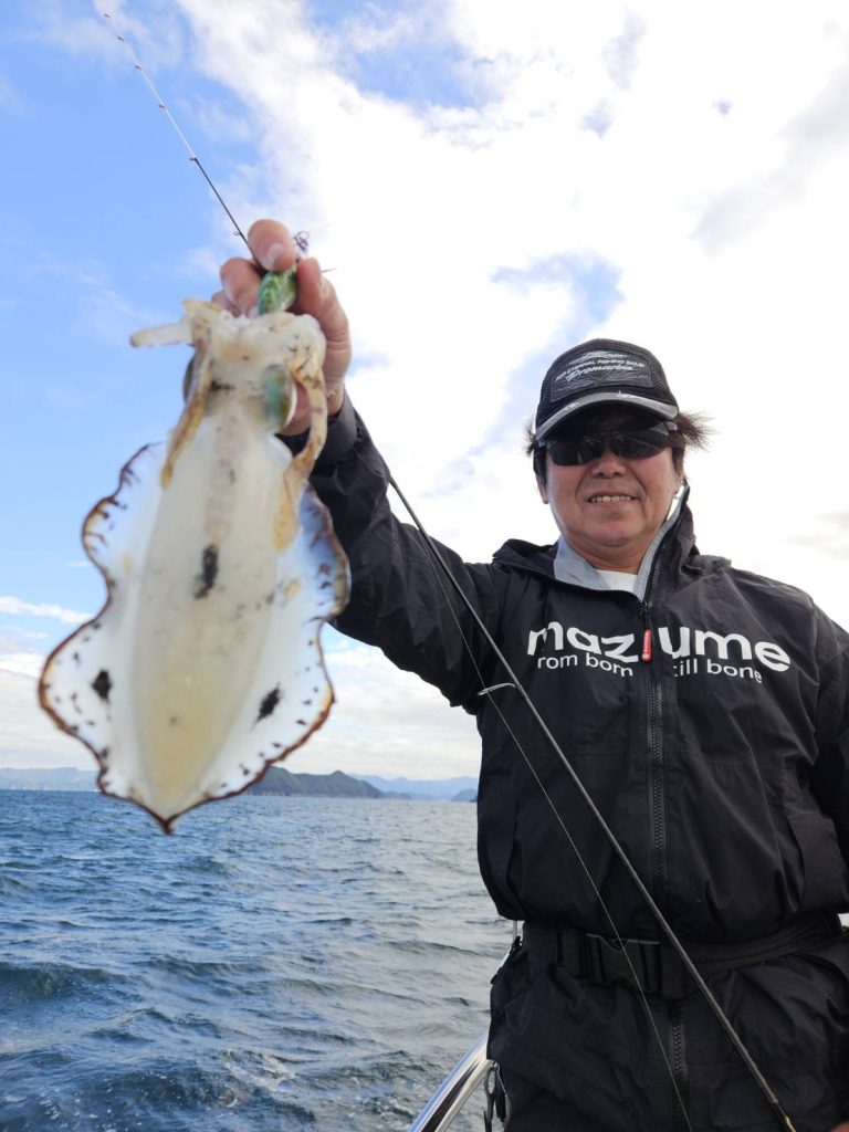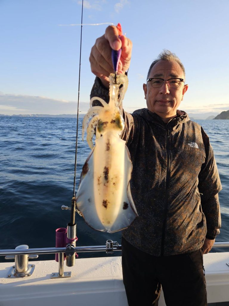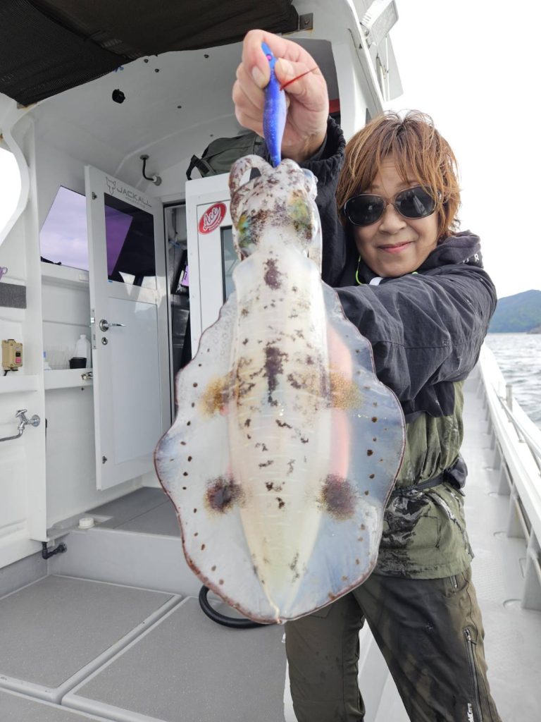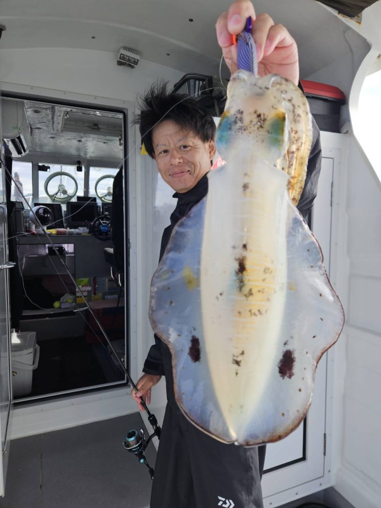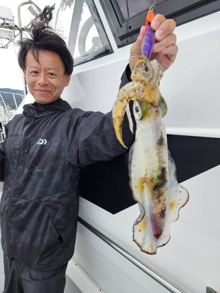 合わせ切れする大きなアオリイカも・・・・竿も