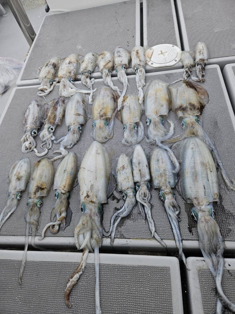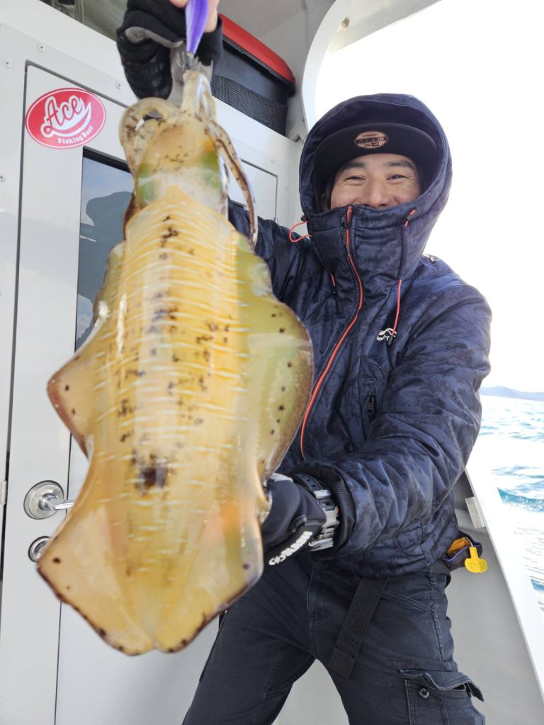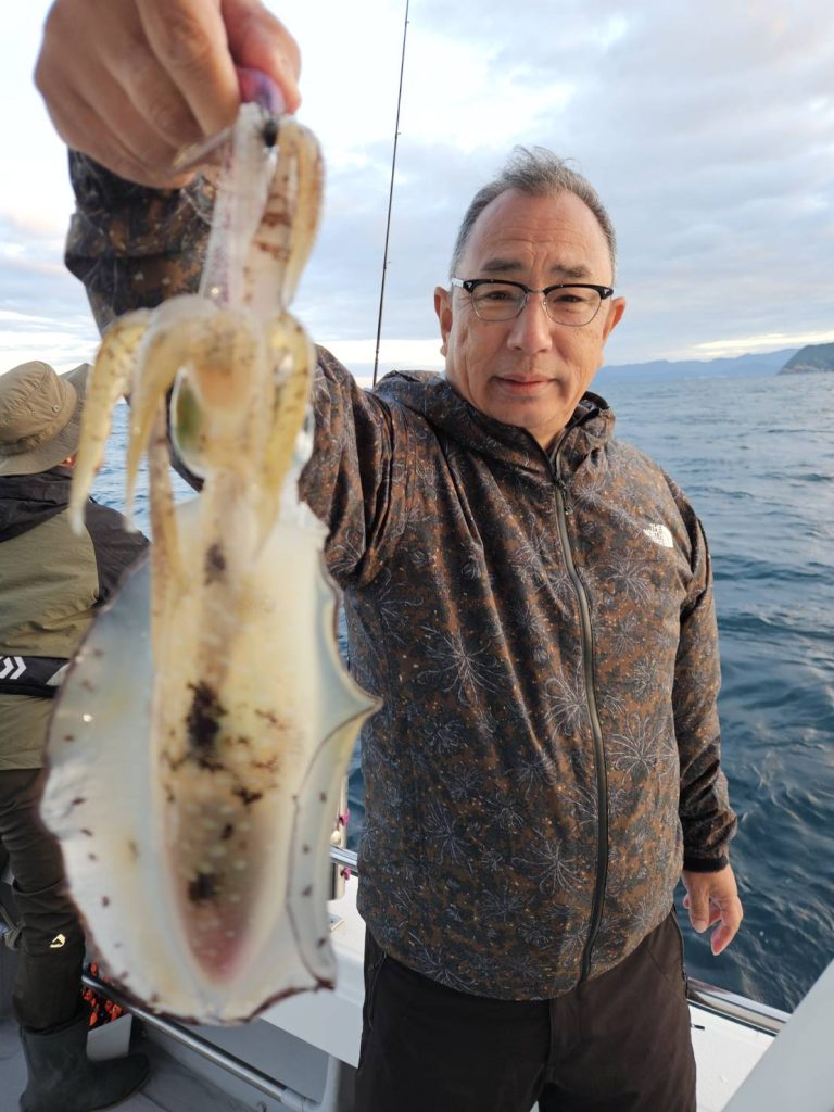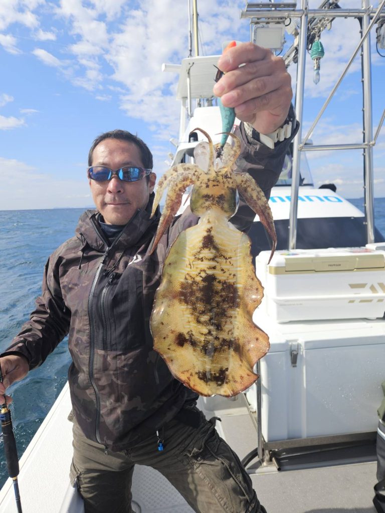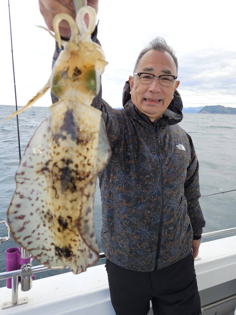 合わせ切れする大きなアオリイカも・・・・竿も